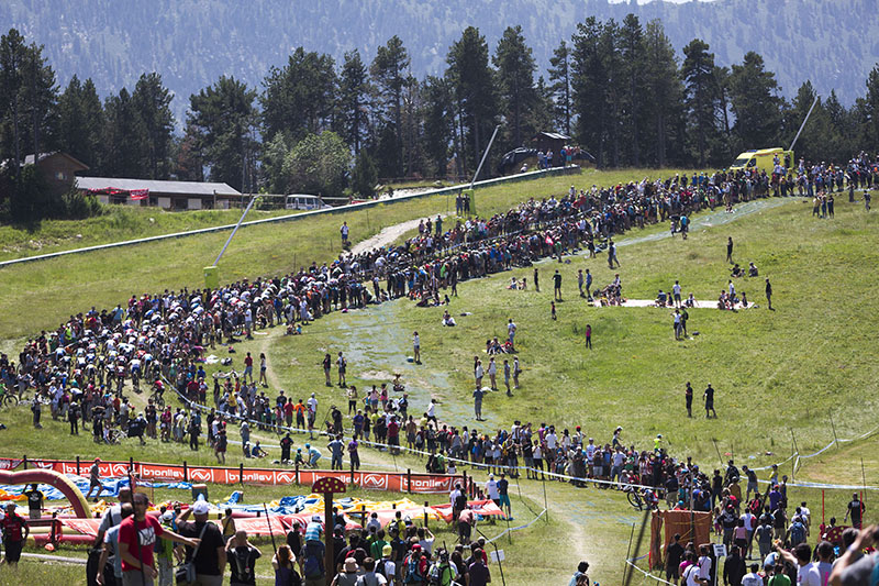 El circuit de DHI té una distància de 2,5 km amb un desnivell de 700 m. El circuit, que comença a Pal, destaca per una part més física a la zona superior, seguida de canvis a la zona intermèdia, on s’han dissenyat uns salts que faran augmentar l’espectacularitat de la prova. La part final presenta un desnivell més radical, amb trams dins del bosc pràcticament verticals, cosa que fa que els riders l’hagin valorat com un dels circuits més complets i difícils del circuit mundial. En aquest sentit, el rider local Cédric Gracia va fer un paral·lelisme entre aquest recorregut i la prestigiosa pista de descens d’esquí alpí de Kitzbühel.